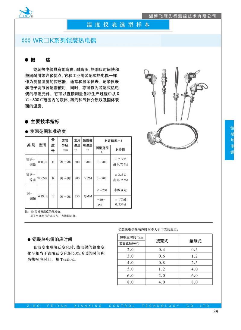 鎧裝熱電偶具有能彎曲、耐高壓、熱響應(yīng)時(shí)間快和堅(jiān)固耐用等許多優(yōu)點(diǎn).它和工業(yè)用裝配式熱電偶一樣,作為測(cè)量溫度的傳感器,通常和顯示儀表.記錄儀表和電子調(diào)節(jié)器配套使用,同時(shí),亦可作為裝配式熱電偶的感溫元件。它可以直接測(cè)量各種生產(chǎn)過程中從0C~800℃范圍內(nèi)的液體、蒸汽和氣體介質(zhì)以及固體表面的溫度。