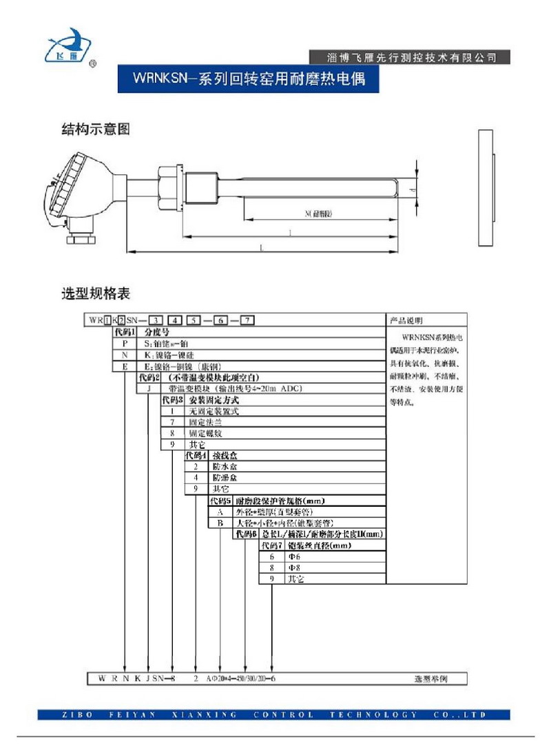 飛雁先行針對水泥行業(yè)回轉(zhuǎn)窯、粉體磨等設(shè)備運(yùn)行過程中溫度測量的需要,采用獲得國家發(fā)明專利的耐高溫抗磨抗氧化合金保護(hù)管,研制的新型耐磨熱電偶/熱電阻,該合金保護(hù)管在高,低溫環(huán)境中,能持久耐磨,耐金屬鹽類腐蝕。 以耐磨保護(hù)管外徑為中22mm的該產(chǎn)品為例,在某水泥廠的回轉(zhuǎn)窯頭、窯尾等高溫部位試用,使用壽命超過4個月。若適當(dāng)增加外徑,使用壽命可超過半年,是普通耐磨熱電偶的幾倍,大大提高生產(chǎn)效率,降低成本消耗,具有很高的性價比。新型耐磨熱電偶/阻采用螺紋或法蘭連接方式,能長期在0~1200℃之間進(jìn)行溫度測量,是水泥行業(yè)十分理想的測溫儀表。