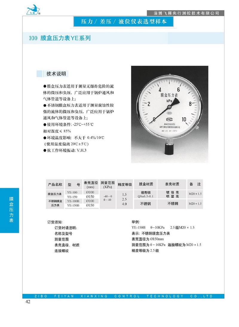 ●膜盒壓力表適用于測量無爆炸危險(xiǎn)的流體的微壓和負(fù)壓,廣泛應(yīng)用于鍋爐通風(fēng)和氣體管道等設(shè)備上; ●不銹鋼膜盒壓力表適用于測量腐蝕性較強(qiáng)的流體的微壓和負(fù)壓,廣泛應(yīng)用于鍋爐通風(fēng)和氣體管道等設(shè)備上; ●使用環(huán)境條件:-25℃~+55℃ 相對濕度≤85% ●環(huán)境溫度影響:不大于0.4%/10℃ (使用溫度偏離20℃±5℃) ●抗工作環(huán)境振動:V.H.3