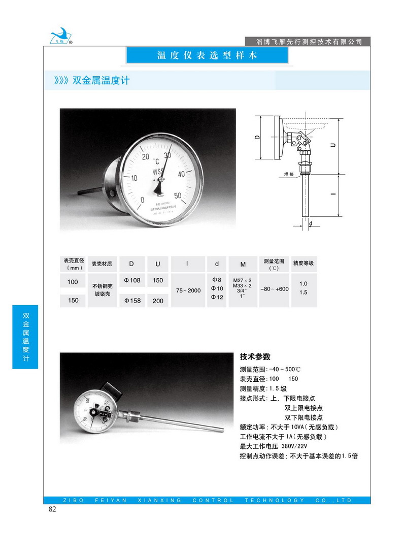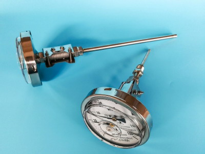 雙金屬溫度計是采用雙金屬片為感溫元件的一種適合測量和控制中,低溫管道設(shè)備溫度的工業(yè)儀表。該儀表具有線性好、反應(yīng)靈敏、指示清晰,無汞害、抗震性好、多視角等優(yōu)點,廣泛應(yīng)用于機械、輕紡、化工船舶.制藥、食品等生產(chǎn)過程中的測溫和控制。